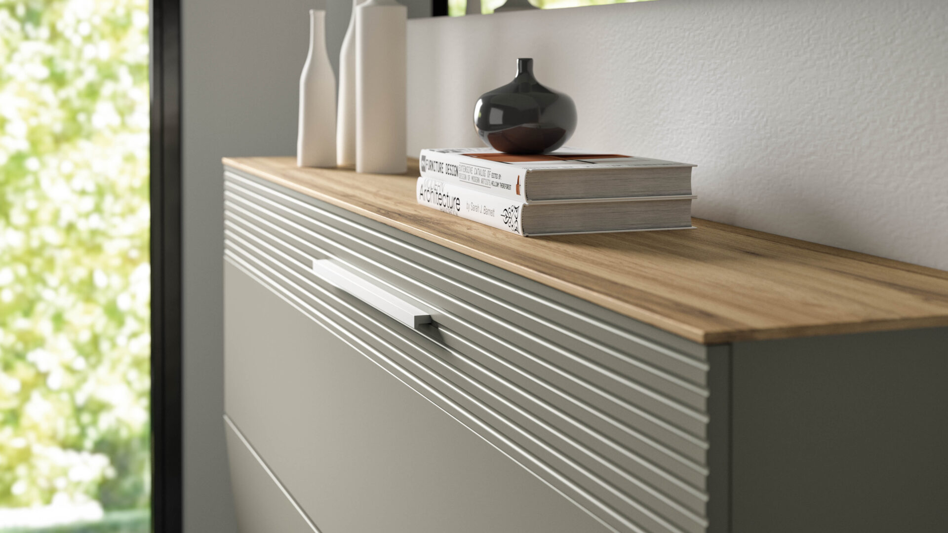 Brightly designed fronts framed by elegant ribbed aluminium profiles provide the perfect combination for a sophisticated entrance.
