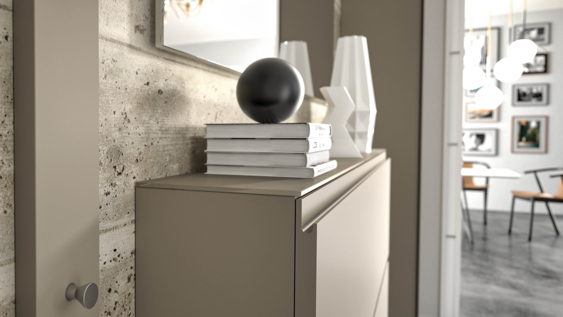 The minimalist design with elegant lines and matt colours creates a sophisticated ambience with a perfect organisation of space.