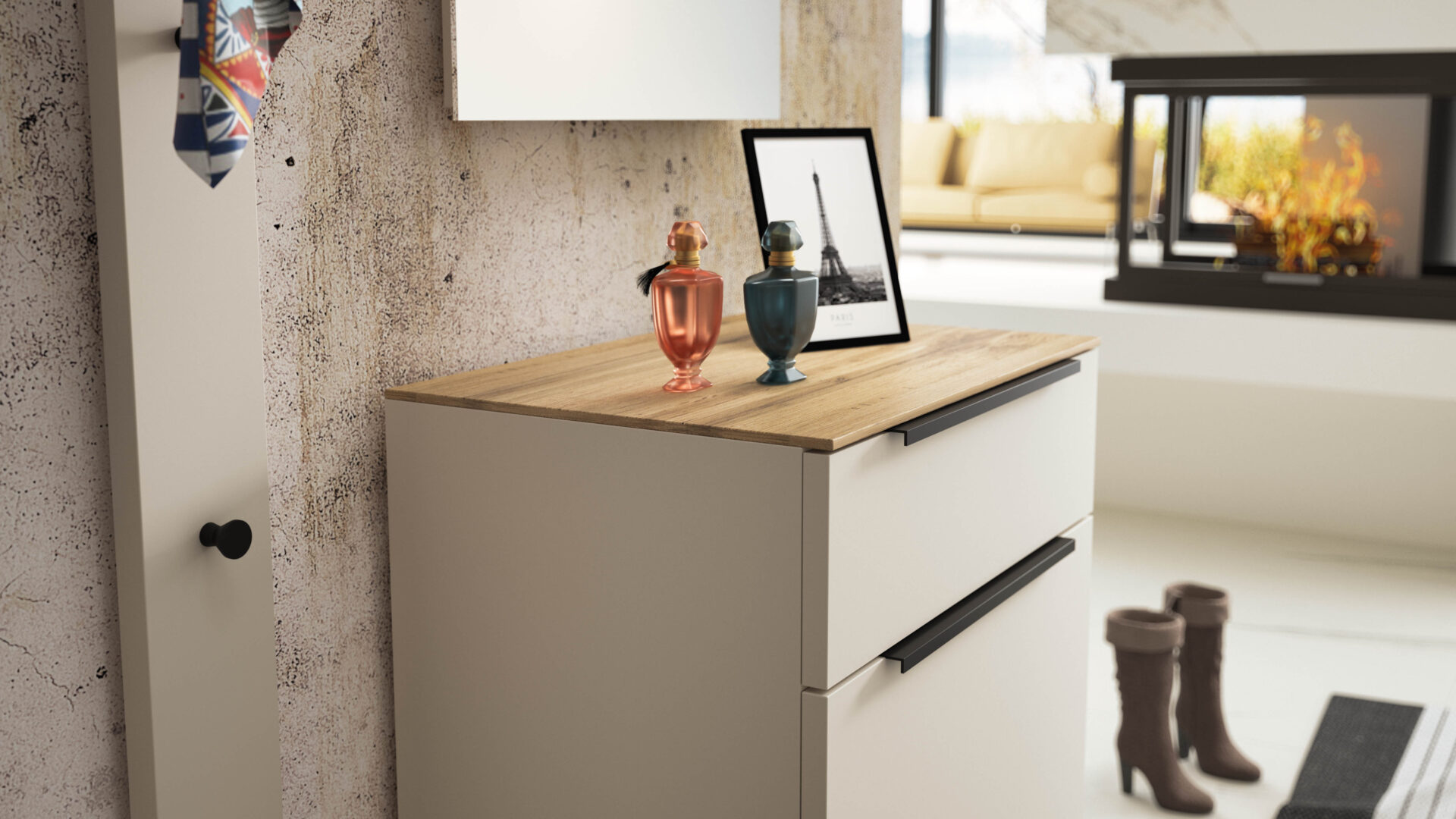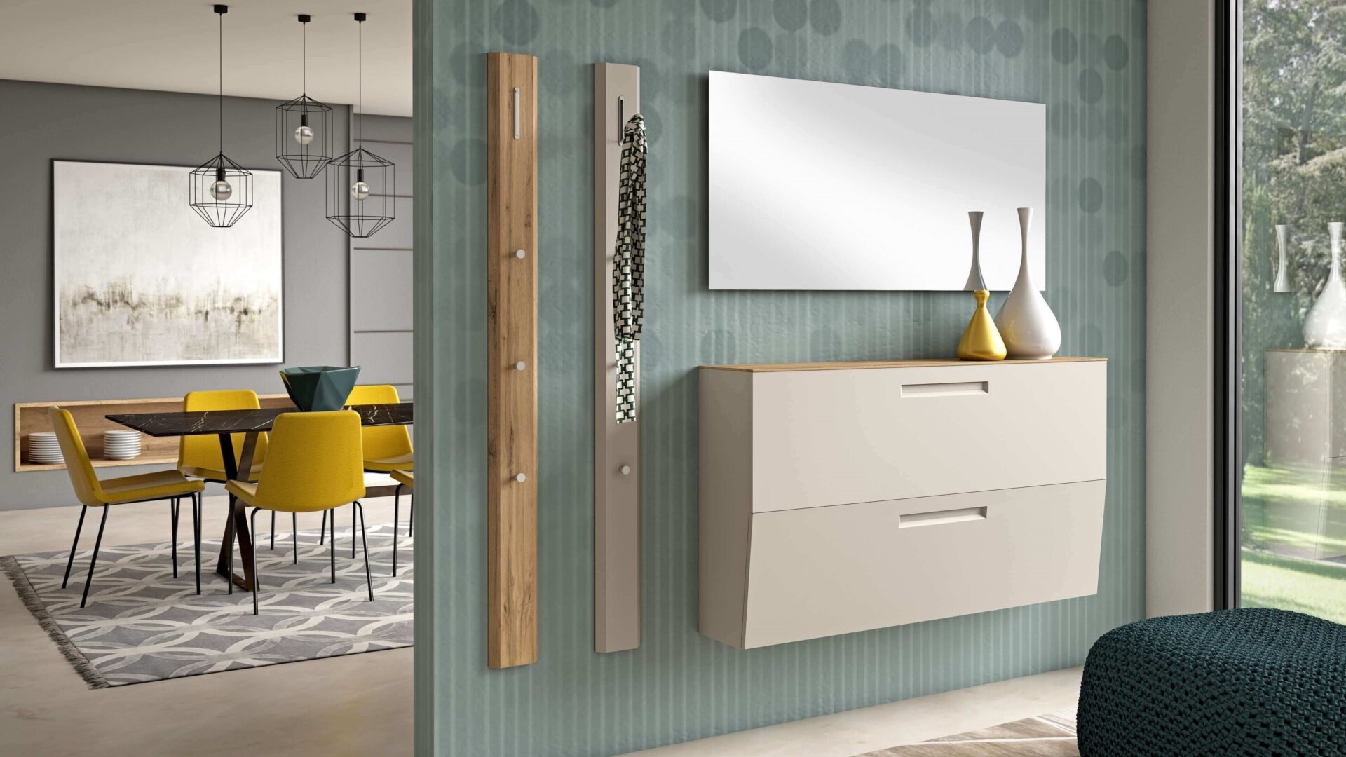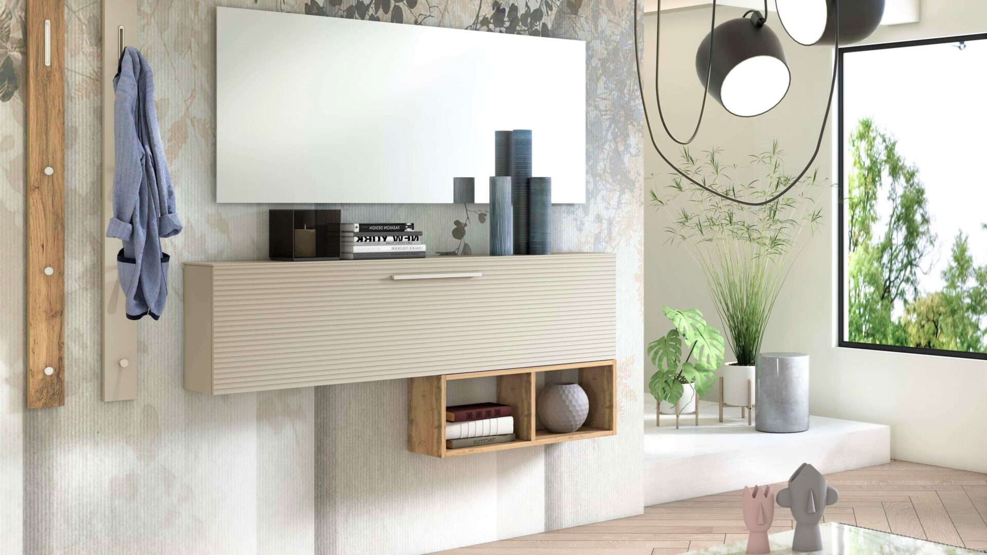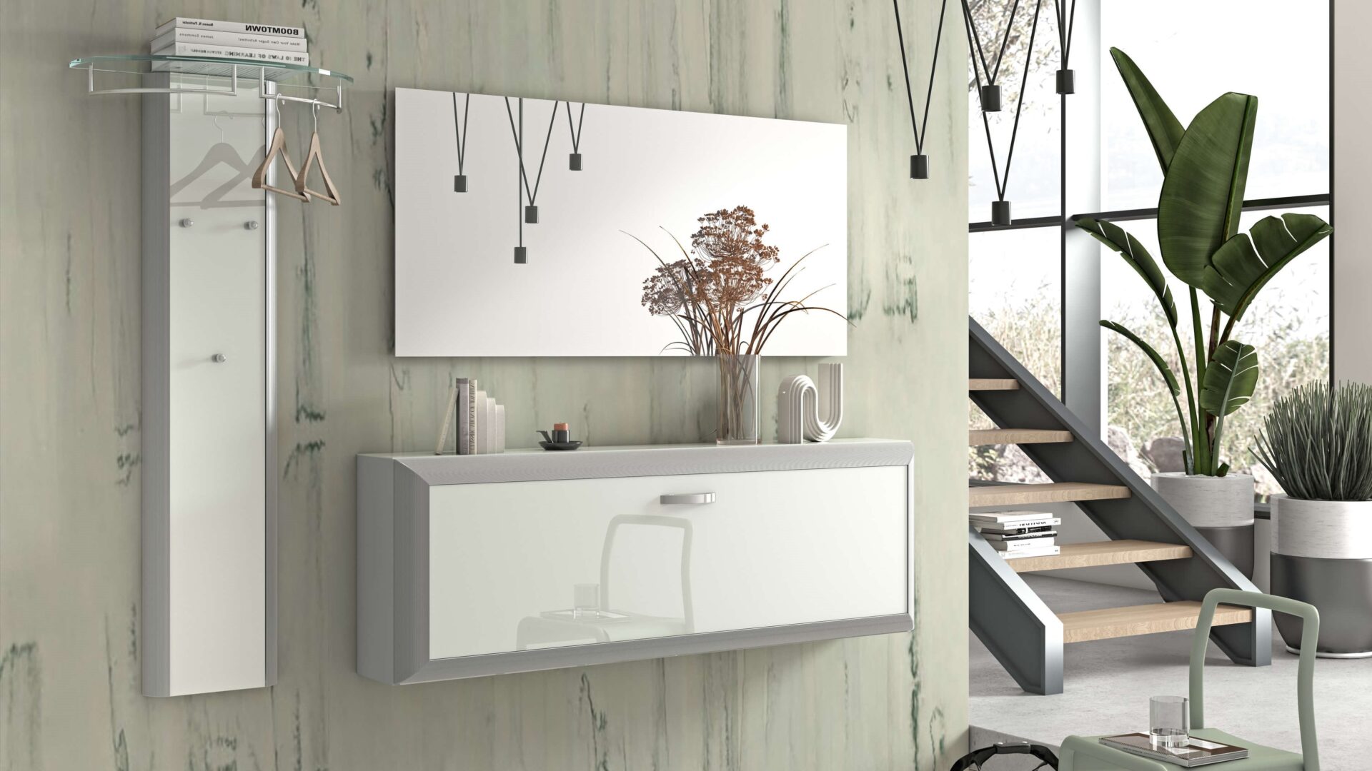 Enhanced by an elegant milled aluminium frame, this Collection offer an exclusive and organized home entrance furniture.